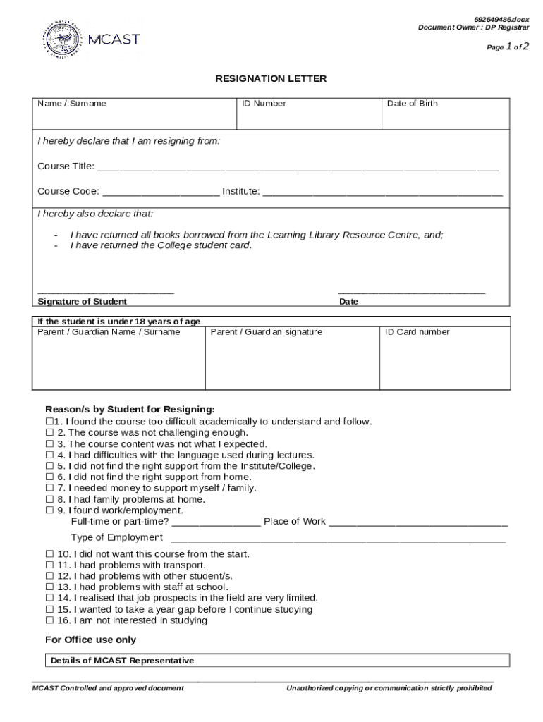 What is I hereby declare that I am resigning from: Form?