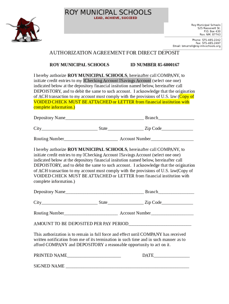 AUTHORIZATION AGREEMENT FOR PAYROLL DIRECT ... template instructions