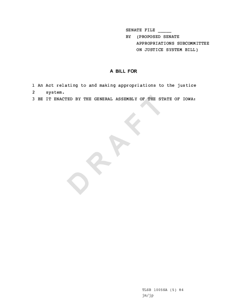 ON JUSTICE SYSTEM BILL)A BILL FORDRAFT1 An Act relating to and making appropriations to the justice