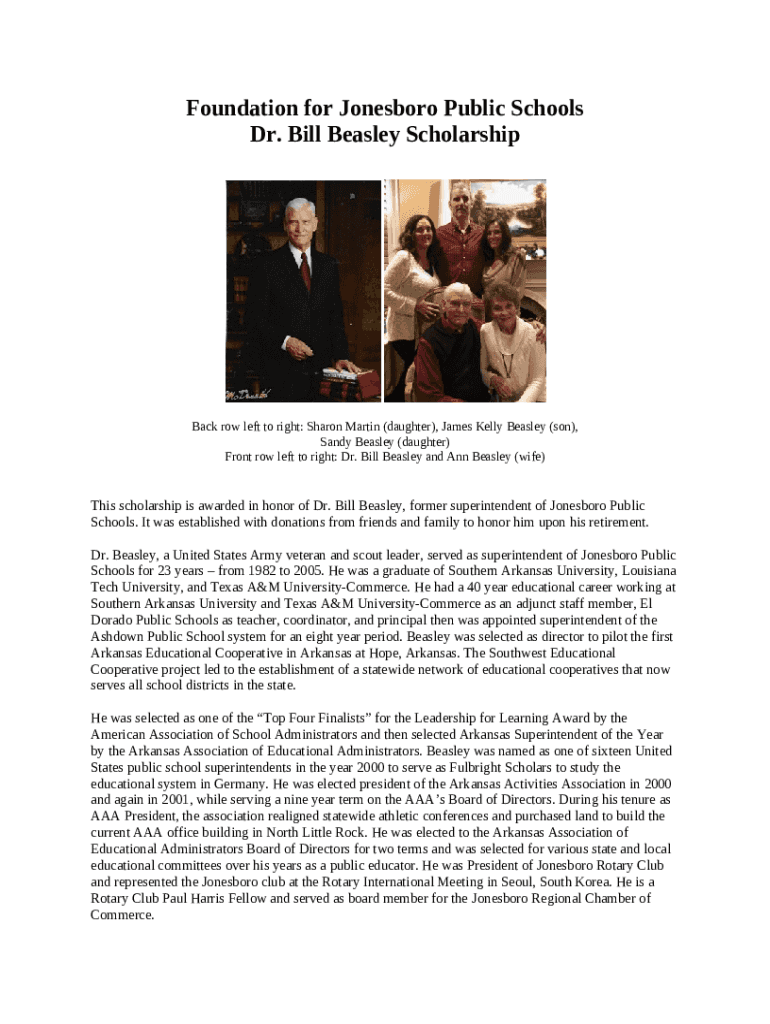 - Search for the Foundation for Jonesboro Public Schools Dr. Bill Beasley ... form in the Search box on the top of the main page.