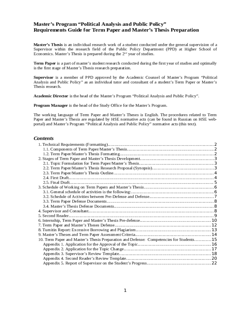 What is Requirements Guide - Term Paper and Masters Thesis. ... Form?