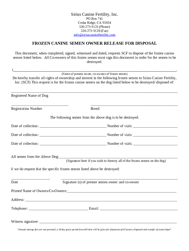 Instructions for the Canine Reproduction Services Northern California form