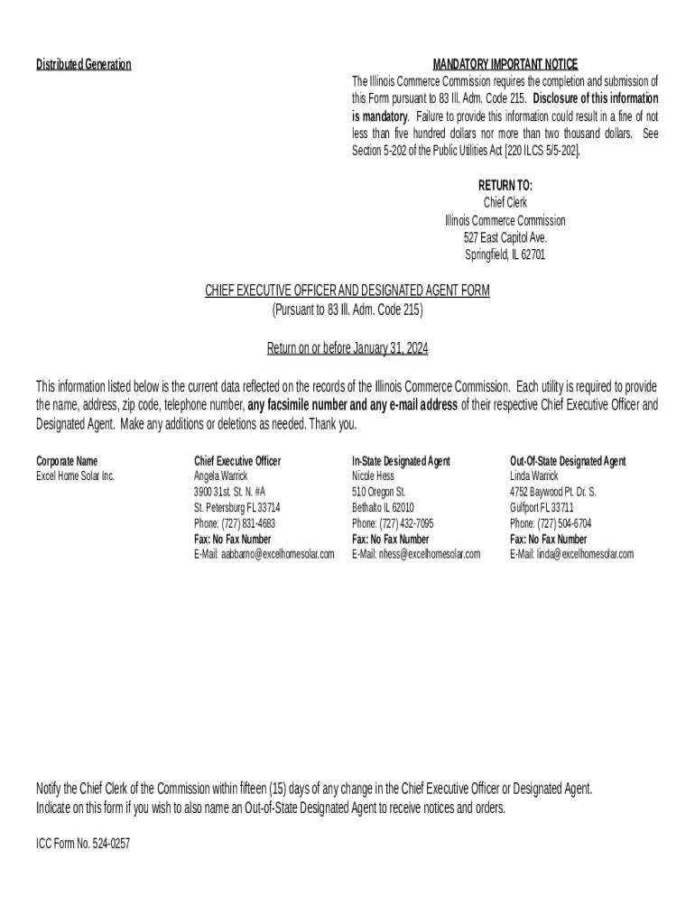 Instructions for the form Excel Home Solar Inc