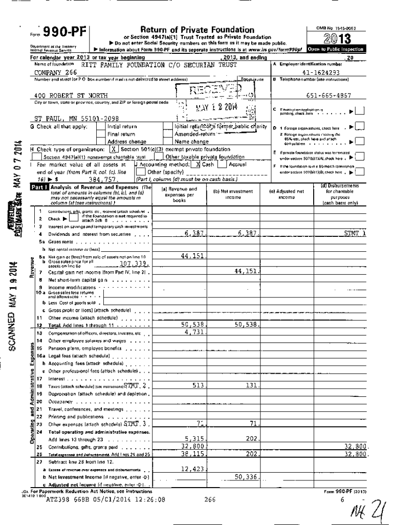 Form OMB No 154500Return of Private Foundation990 For Section 4947(a)(1) Trust Treated as Private Foundation^O10 Do not enter Social Security numbers on this form as it may be made public.