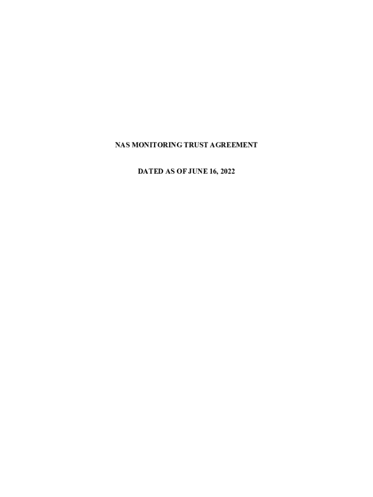 NAS MONITORING TRUST AGREEMENT DATED AS OF JUNE 16, 2022TABLE OF CONTENTS PAGE SECTION I AGREEMENT OF TRUST 1.1 1.2 1.3 1.4 1.5 1.6Creation and Name .......................................................................................................3