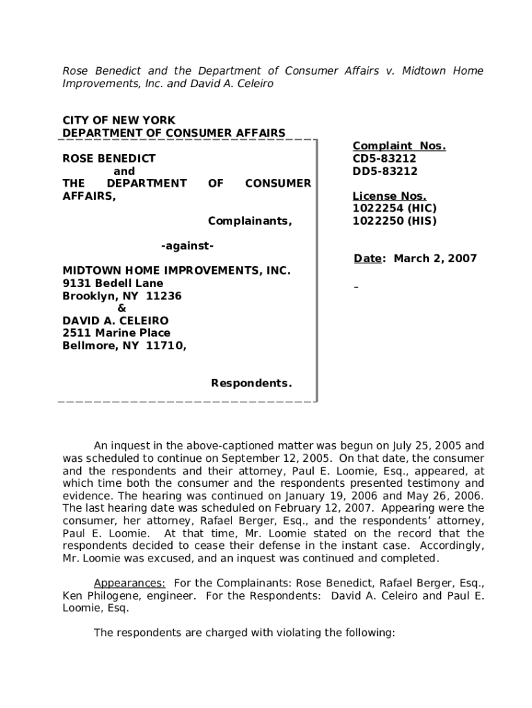 What is Rose Benedict and the Department of Consumer Affairs v - archive citylaw Form?