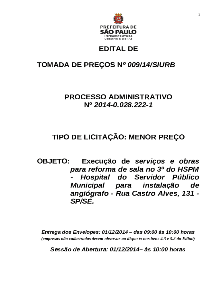 Secretaria Municipal de Infraestrutura Urbana e Obras template instructions