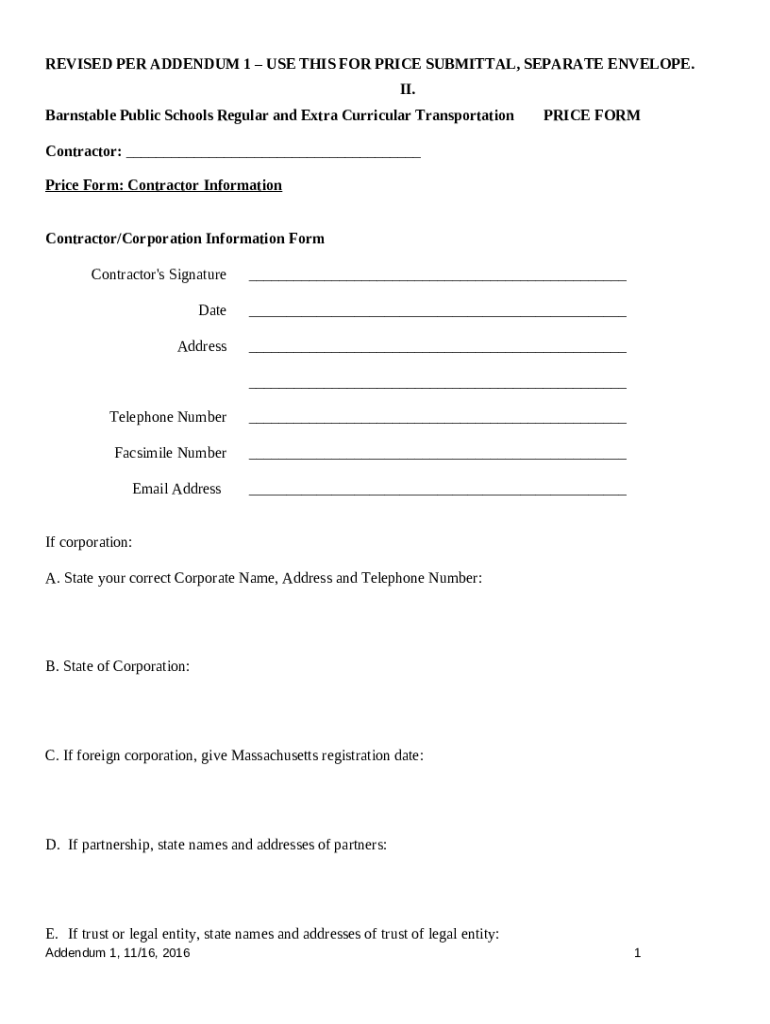 Frequently asked questions about REVISED PER ADDENDUM 1 - USE THIS FOR PRICE SUBMITTAL, SEPARATE ENVELOPE template