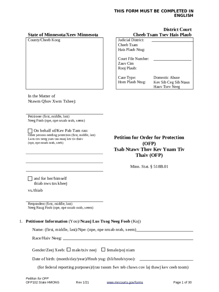 Template OFP401 Affidavit and Motion to Modify Order for Protection instructions