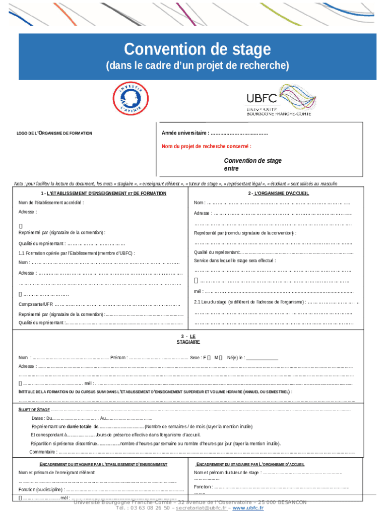 How to fill NOTICE A LA CONVENTION DE STAGE La prsente ... word template