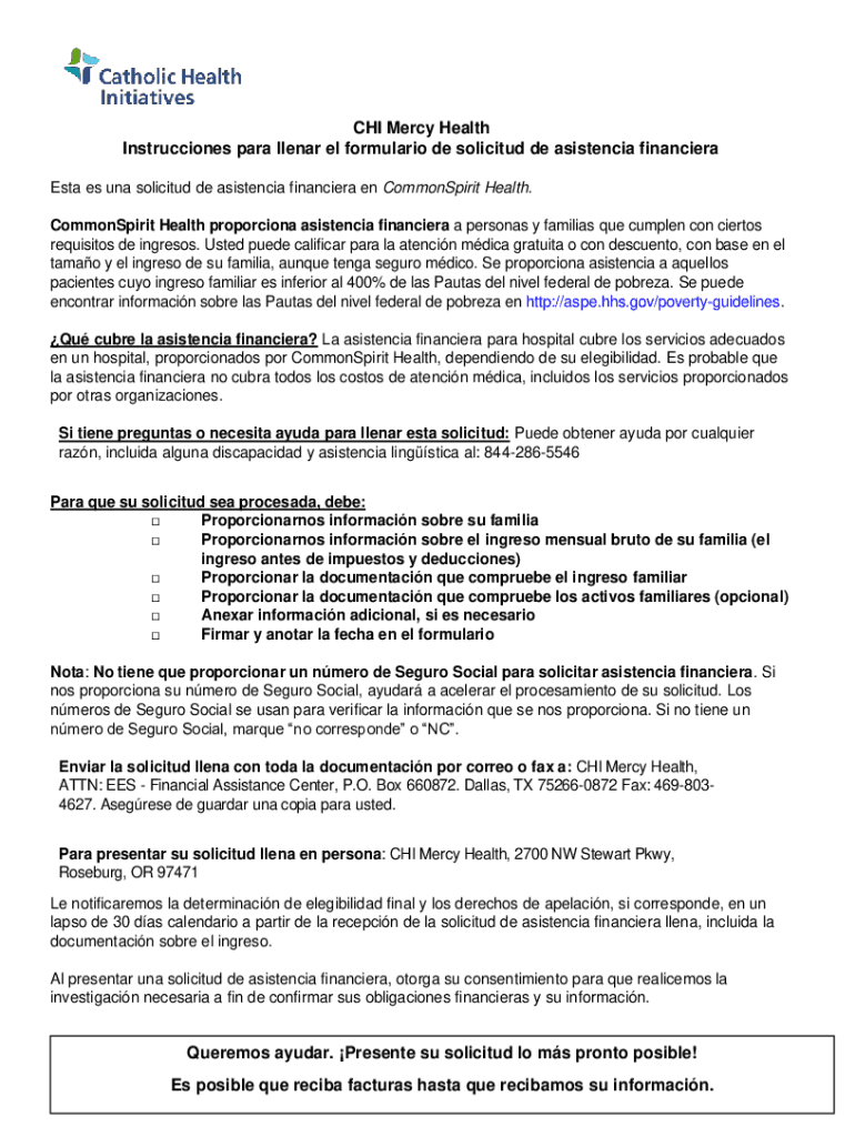 Para completar Chi Mercy Health Instrucciones, se deben seguir los formularios y guías proporcionadas por Chi Mercy Health, asegurando que toda la información se llene con precisión.