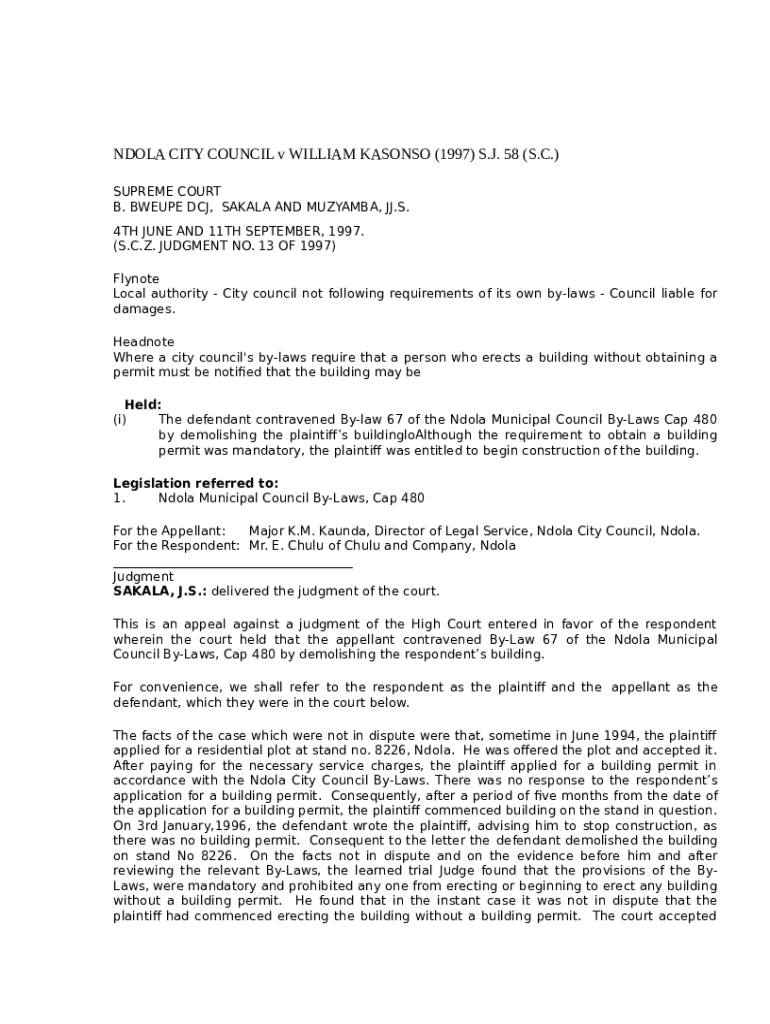 Ndola City Council v Kasonso (S.C.Z. Judgment No. 13 of ... template instructions
