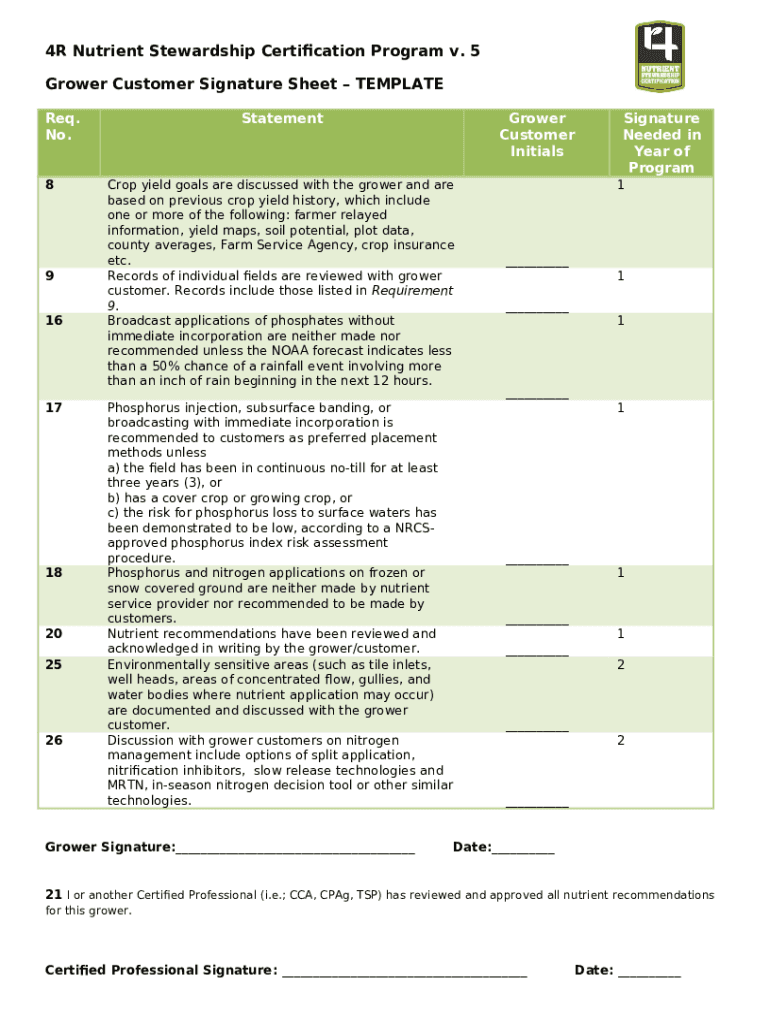 Template Grower Customer Signature Sheet - TEMPLATE instructions