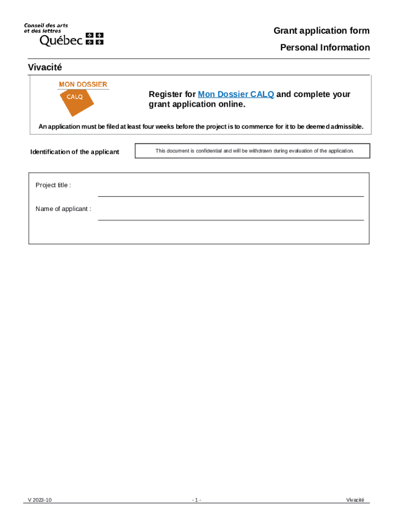 What is Grant application Details of the project Vivacit Form?