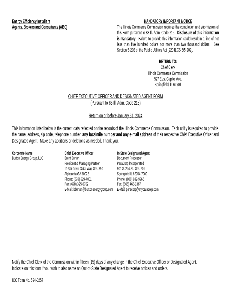 Instructions for the form Burton Energy Group, LLC - icc illinois