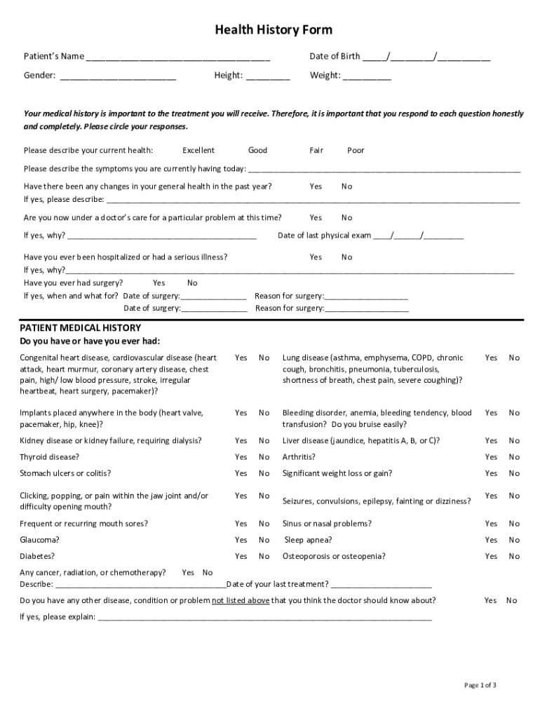 Health History Form