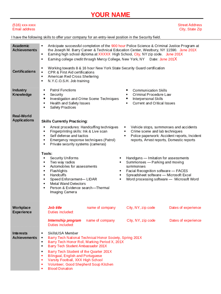 Instructions for the Resume Sample - Criminal JusticeCareer and Student ... form