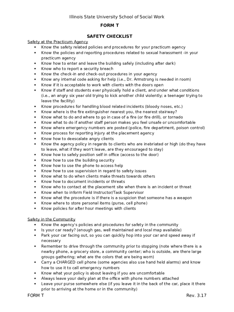 What is Safety Orientation Checklist template - socialwork illinoisstate Form?