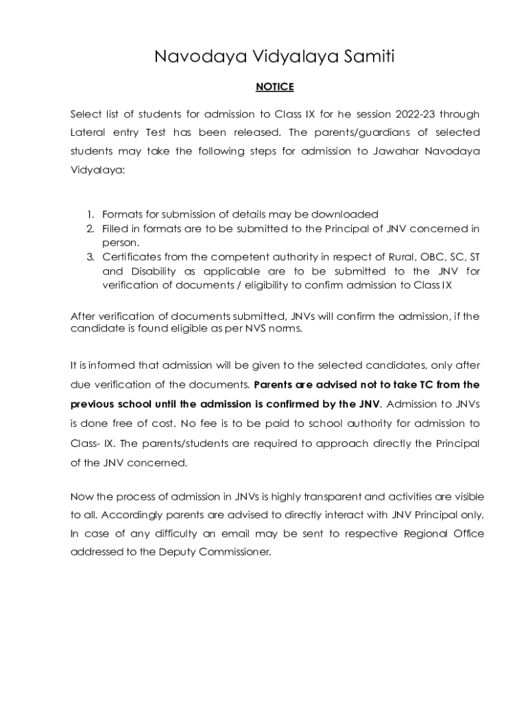 Get the free How to take admission in another district Navodaya school ...