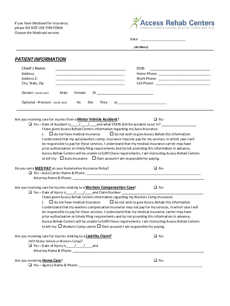 Access Rehab Centers Physical is not the form you're looking for?Search for another form here.