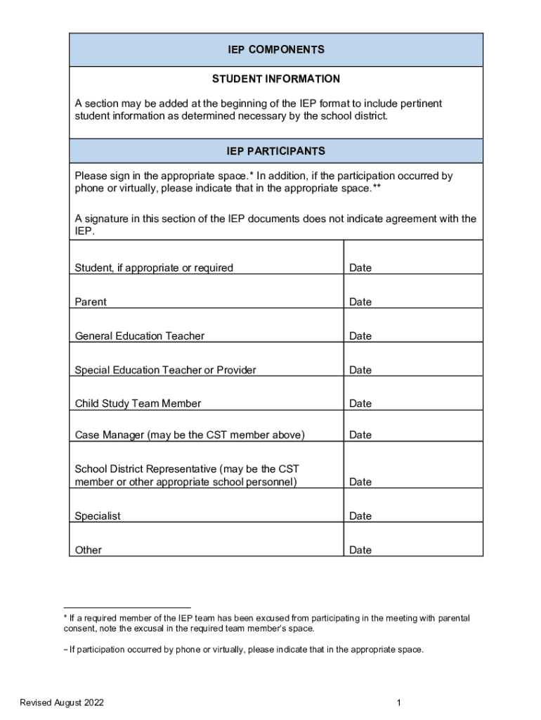 Get the free New Jersey DOE IEP Components