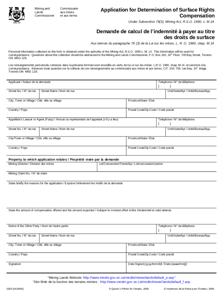 What is Application for Determination of Surface Rights Compensation. 0253 Form?