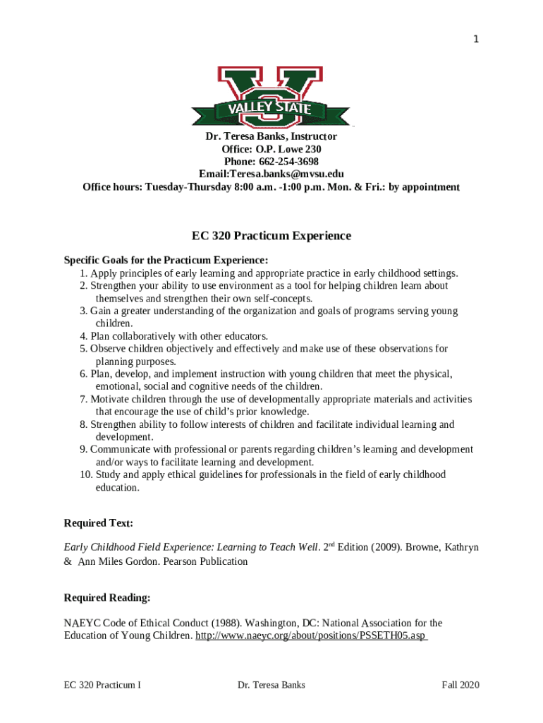 How to fill out EC 320 Practicum Experience