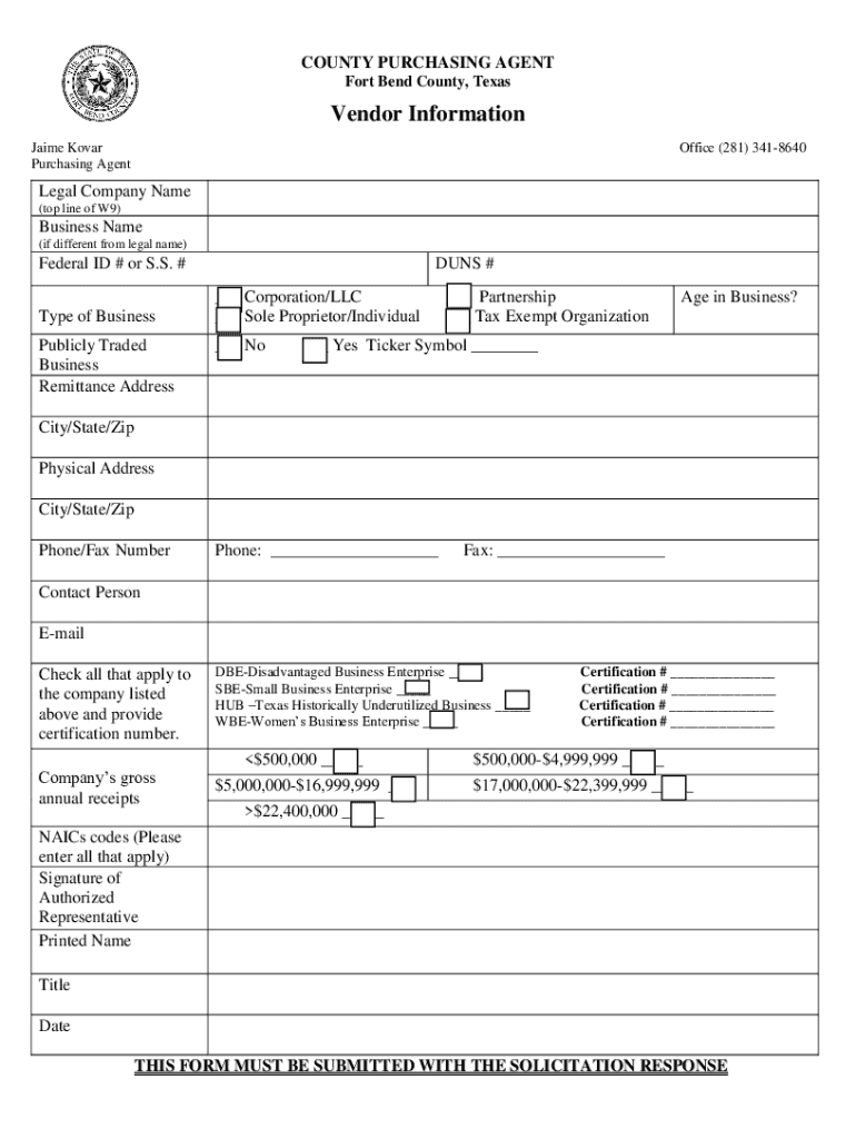 Fort Bend County, Texas Invitation for QuoteS ex Offender Counseling Services Quote 202304SUBMIT QUOTES BY EMAIL TO:SUBMIT NO LATER THAN:Fort Bend County Purchasing Department Jessica Carvajal, Buyer