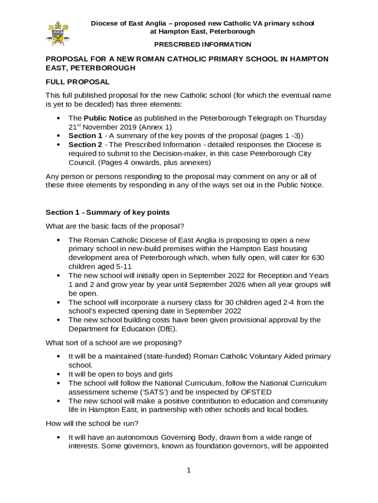 Instructions for the New Catholic school in Peterborough set to be approved form