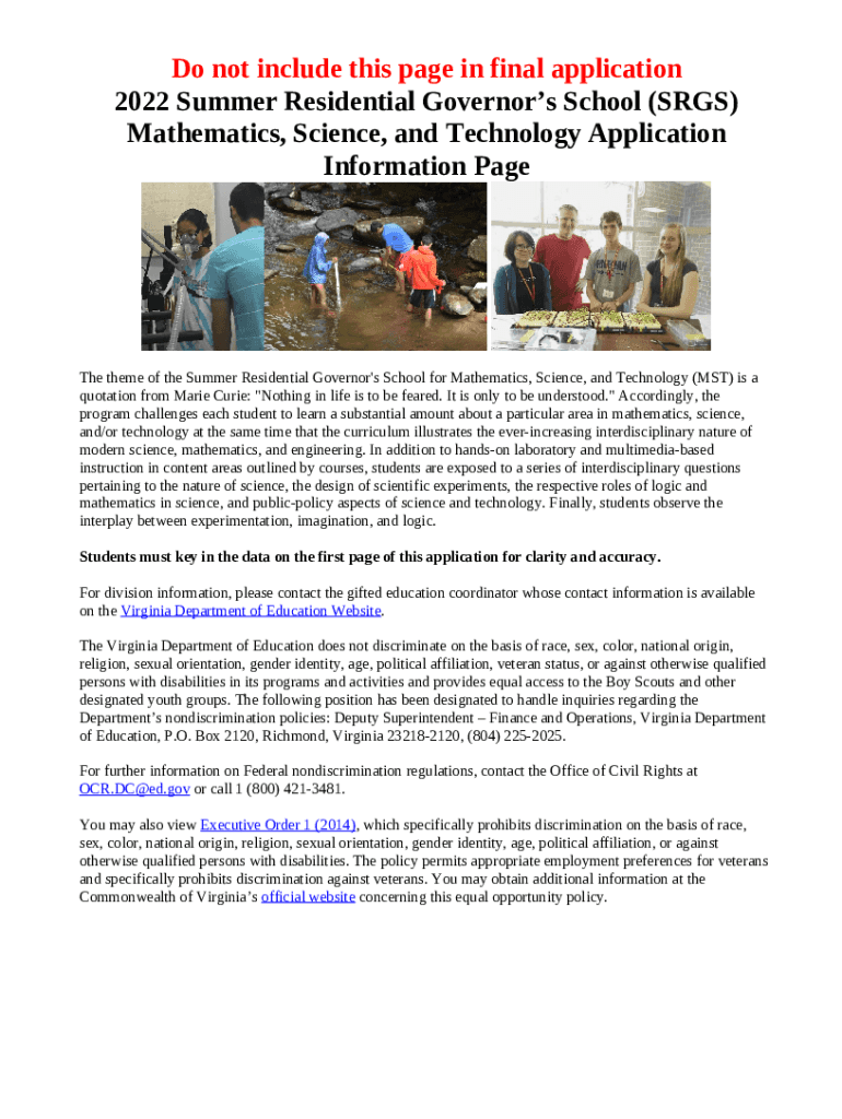 What is Summer Residential Governor's School Application ... - patrioths pwcs Form?