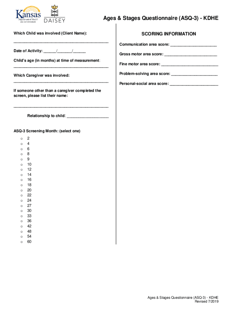 Get the free Ages & Stages Questionnaire (ASQ-3) - KDHE