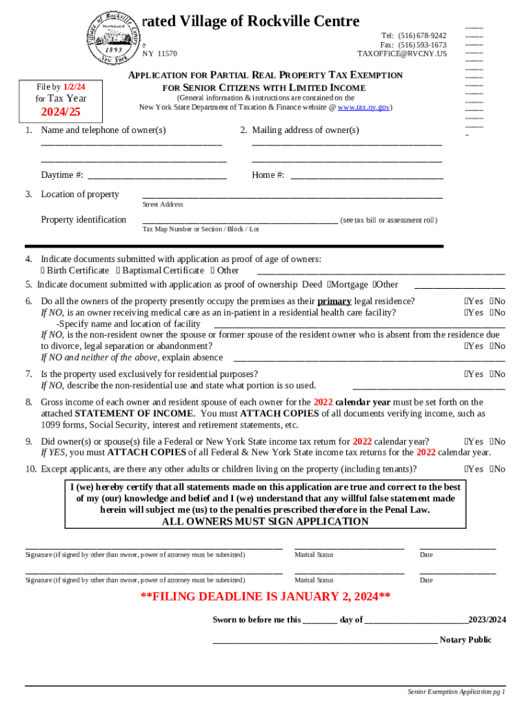 Get the free New York Senior Citizen Property Tax Exemption Application