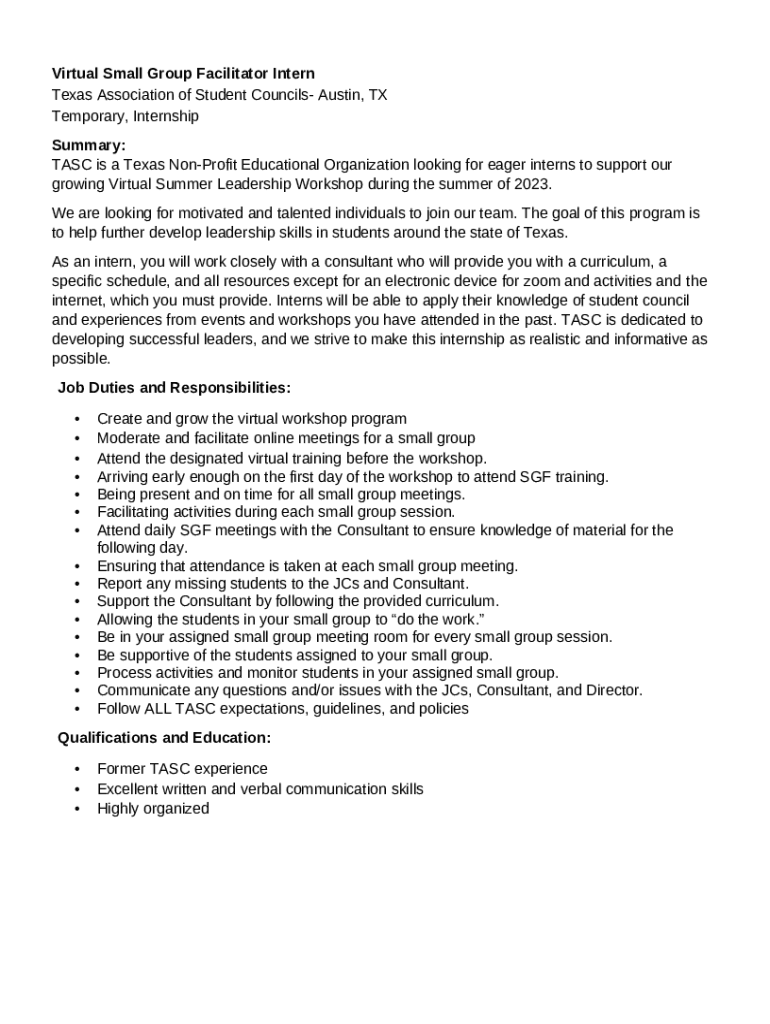 Template Apply to be a TASC Virtual Summer Leadership Alumni Intern instructions