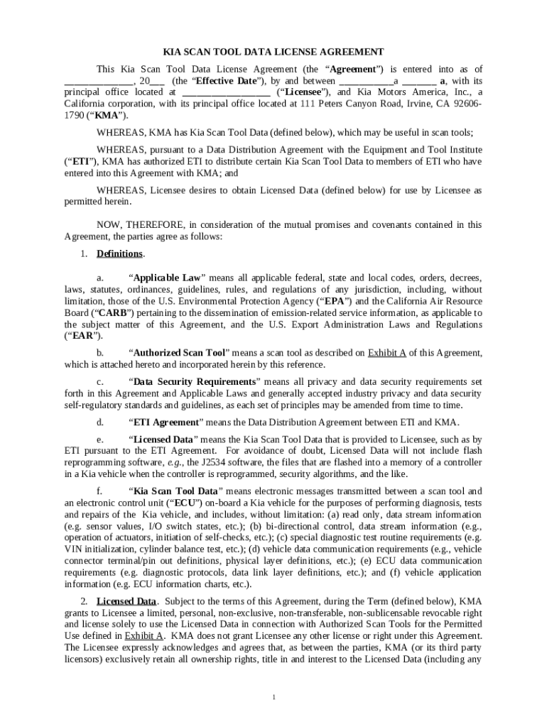 Template KUS - Kia Scan Tool Data License Agreement ( ... instructions