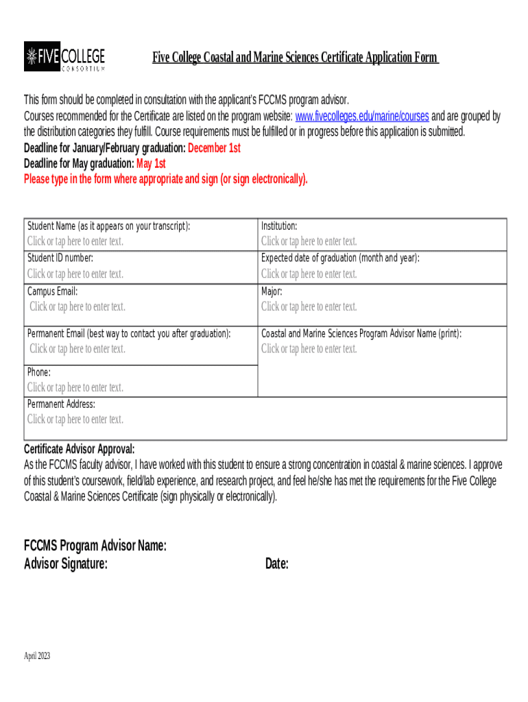 What is Coastal and Marine Sciences Certificate Application April ... Form?