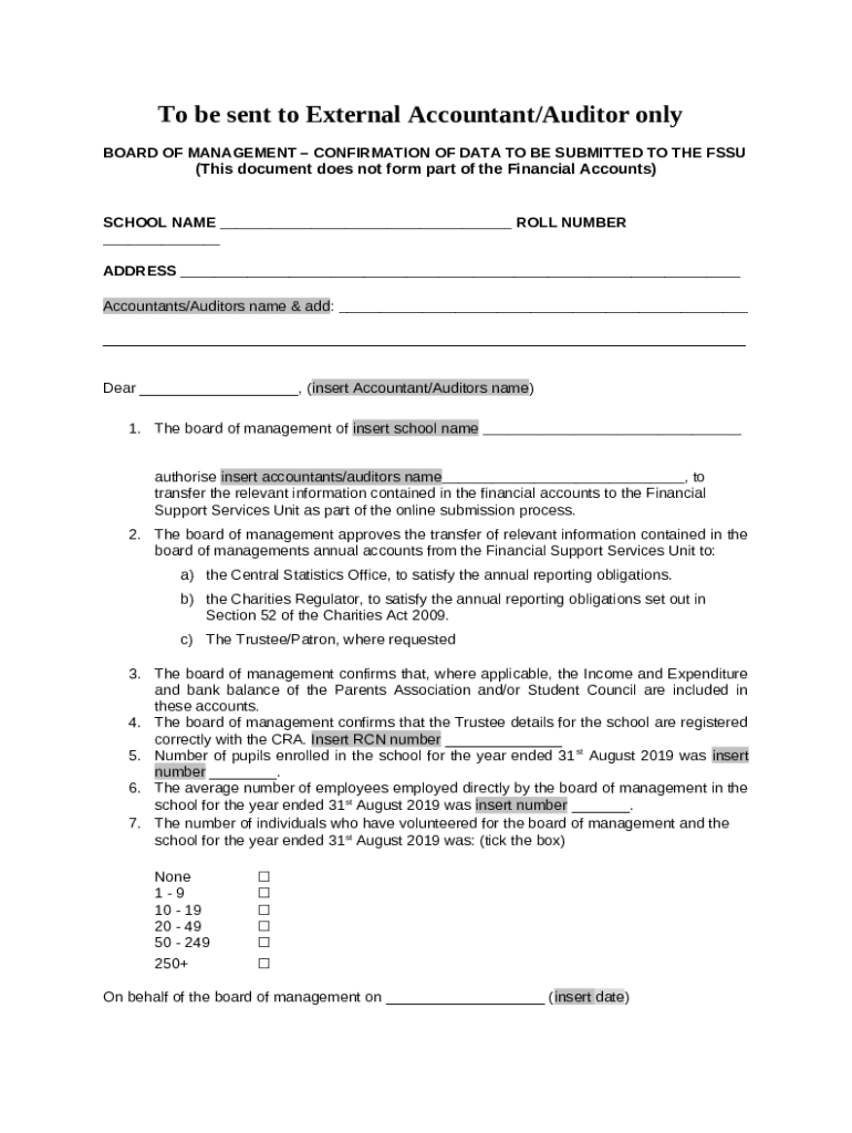 Frequently asked questions about the form To be sent to External Accountant/Auditor only
