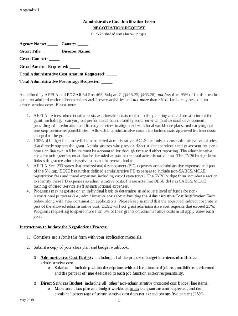 Instructions for the form FY20 FC345 Adult Education Services Appendix I