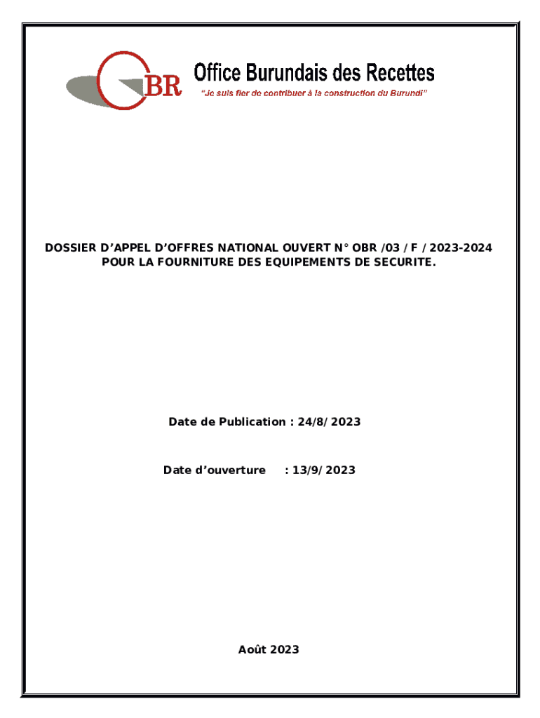 The DOSSIER D'APPEL D'OFFRES NATIONAL OUVERT N ... is a writable document needed to be submitted to the specific address to provide some information. It must be filled-out and signed, which may be done manually, or via a particular software such as PDFfiller. It lets you fill out any PDF or Word document right in the web, customize it according to your needs and put a legally-binding electronic signature. Right after completion, you can send the DOSSIER D'APPEL D'OFFRES NATIONAL OUVERT N ... to the appropriate person, or multiple recipients via email or fax. The blank is printable as well because of PDFfiller feature and options proposed for printing out adjustment. In both digital and physical appearance, your form should have a organized and professional appearance. Also you can turn it into a template for later, there's no need to create a new blank form from the beginning. You need just to amend the ready form.
