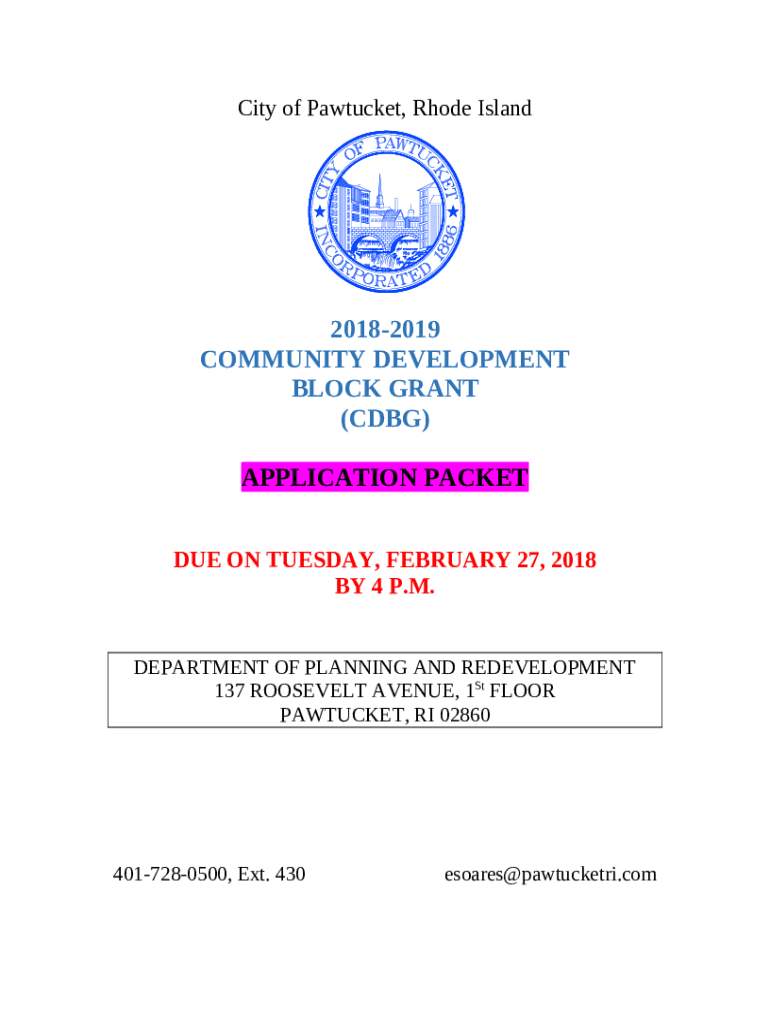 Instructions for the form Please find attached a 2018-2019 Community Development Block Grant (CDBG) application from the City of Pawtucket, Rhode Island