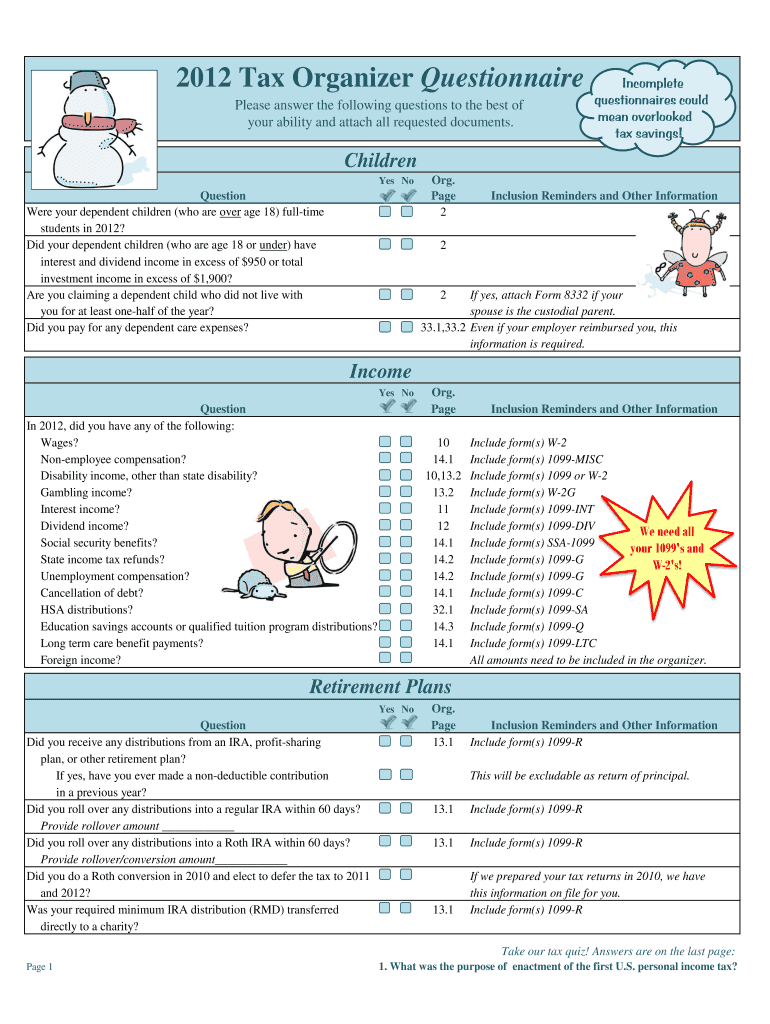 Who Needs the 2012 Tax Organizer Questionnaire?
