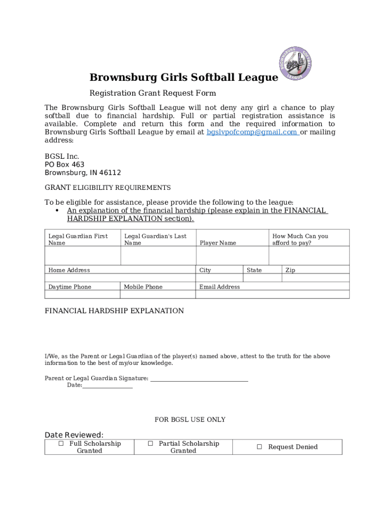 What is Brownsburg Girls Softball League - cloudfront.net Form?