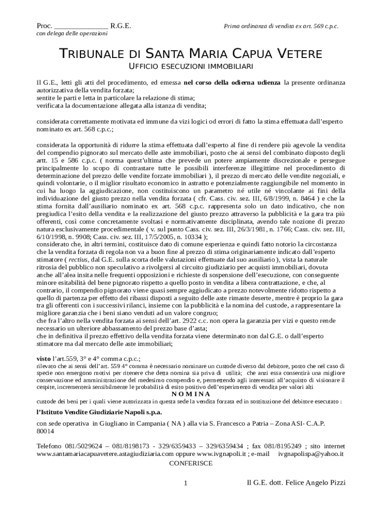 Prima ordinanza di vendita ex art. 569 cpc con delega template instructions
