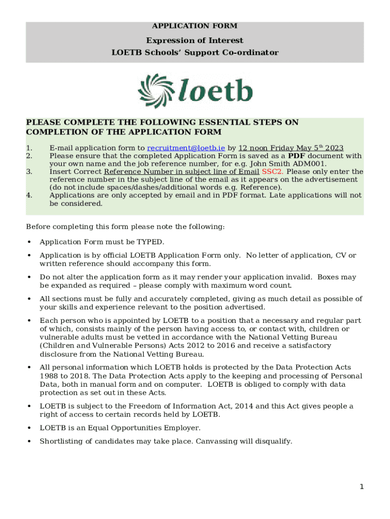 Template Public Appointments Service IE Details Application e - Generic Type. G.1.3.5 instructions