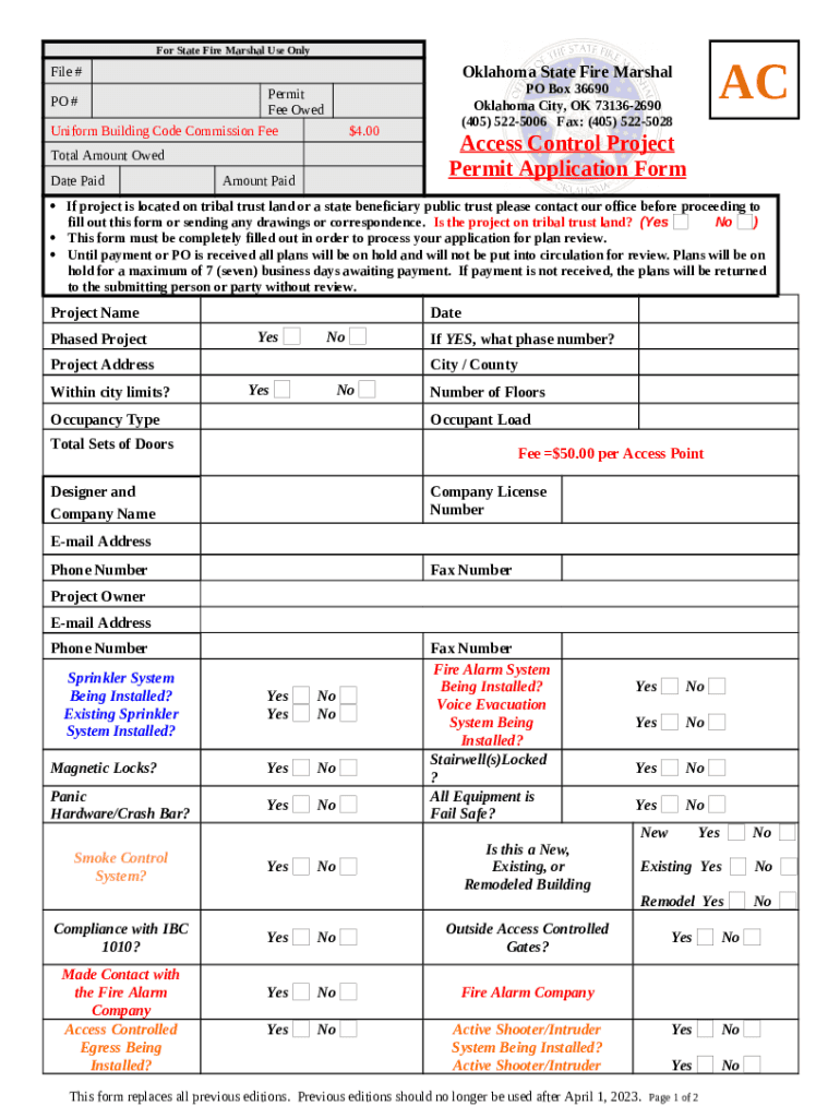 Instructions for the form Access Control Plans Processing Checklist - Oklahoma.gov