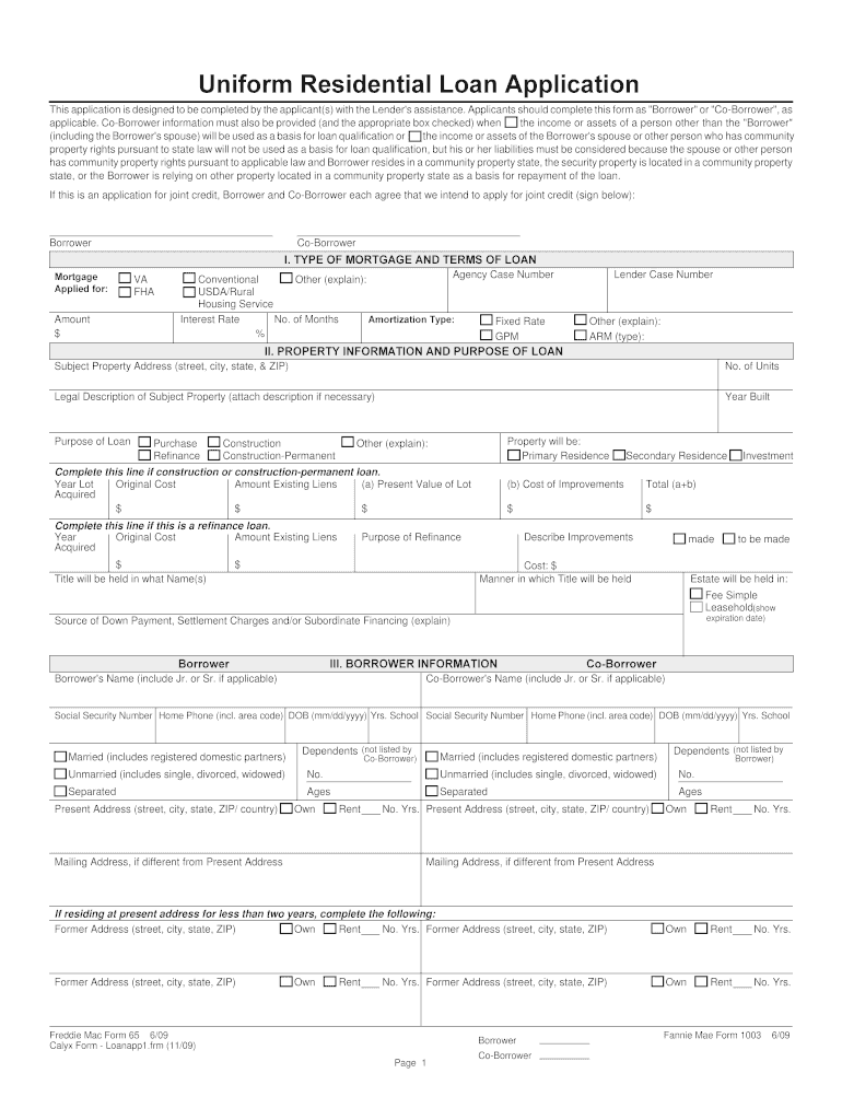 Lenders use the Uniform Residential Loan Application or Form 1003 to evaluate and determine your creditworthiness when applying for a home loan. This form is designed to help lenders make more informed decisions when extending mortgages to borrowers.