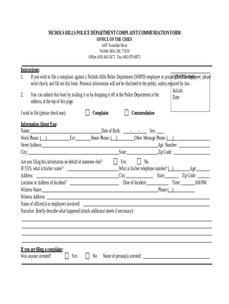Template Nichols Hills Police Department in Avondale Drive, Oklahoma ... instructions