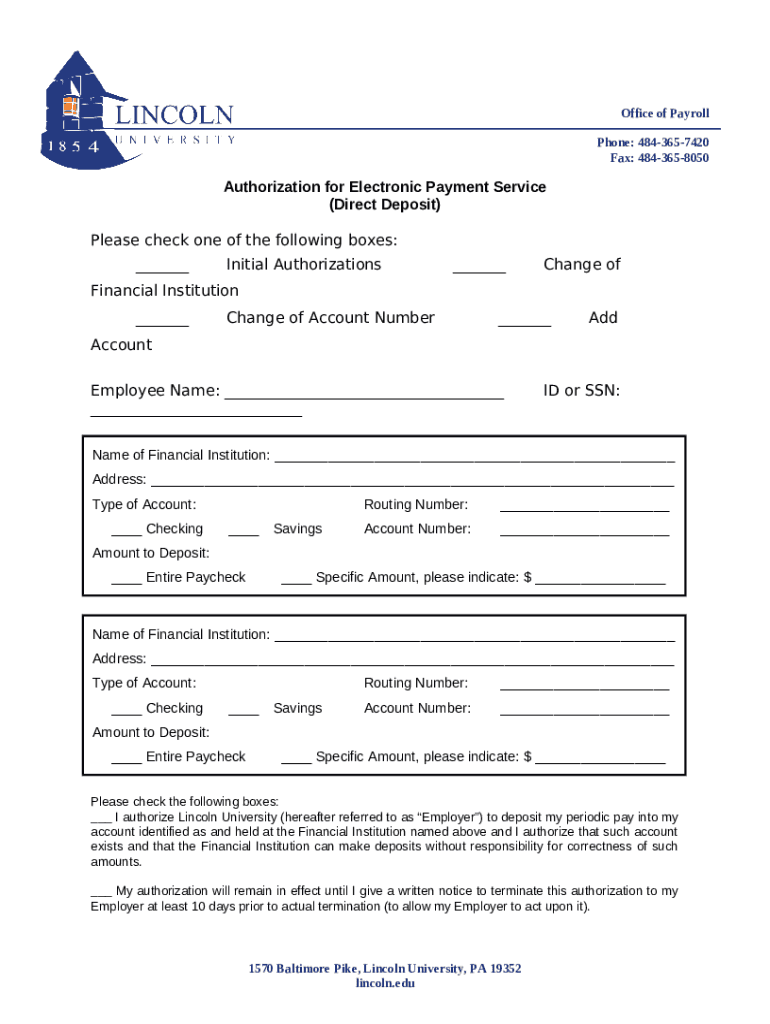 Instructions for the form Electronic Payment Authorization For Automatic Deposits ( ...