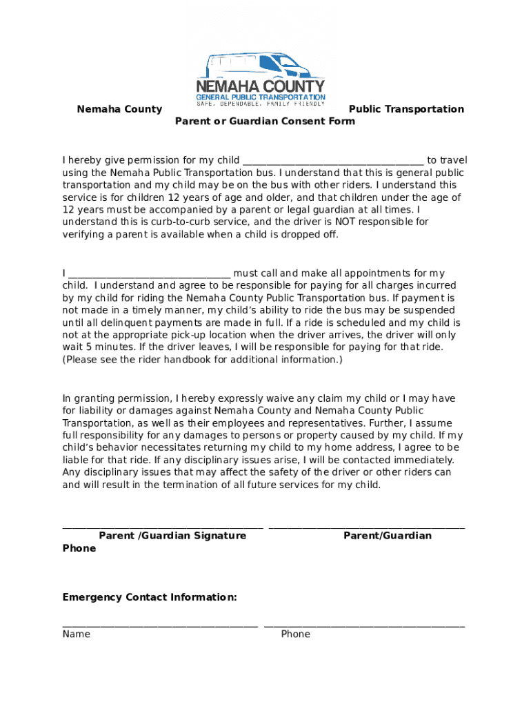 What is Transportation Parental Consent and Release Form?