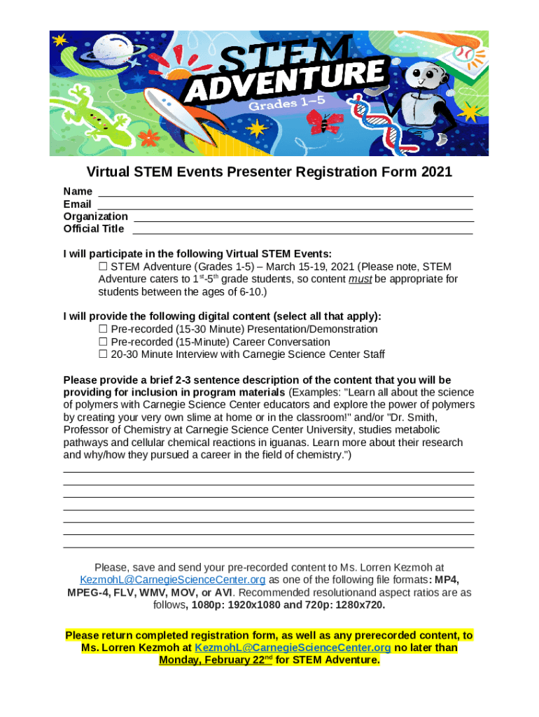 What is NASA STEM Kids Virtual Events at Glenn Form?