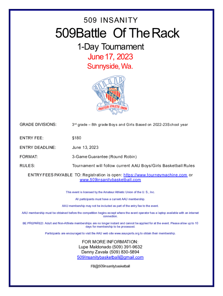 Sunnyside, Wei. GRADE DIVISIONS:3rd grade 8th grade Boys and Girls Based on 202223School carpentry FEE:$180ENTRY DEADLINE:June 13, 2023FORMAT:3Game